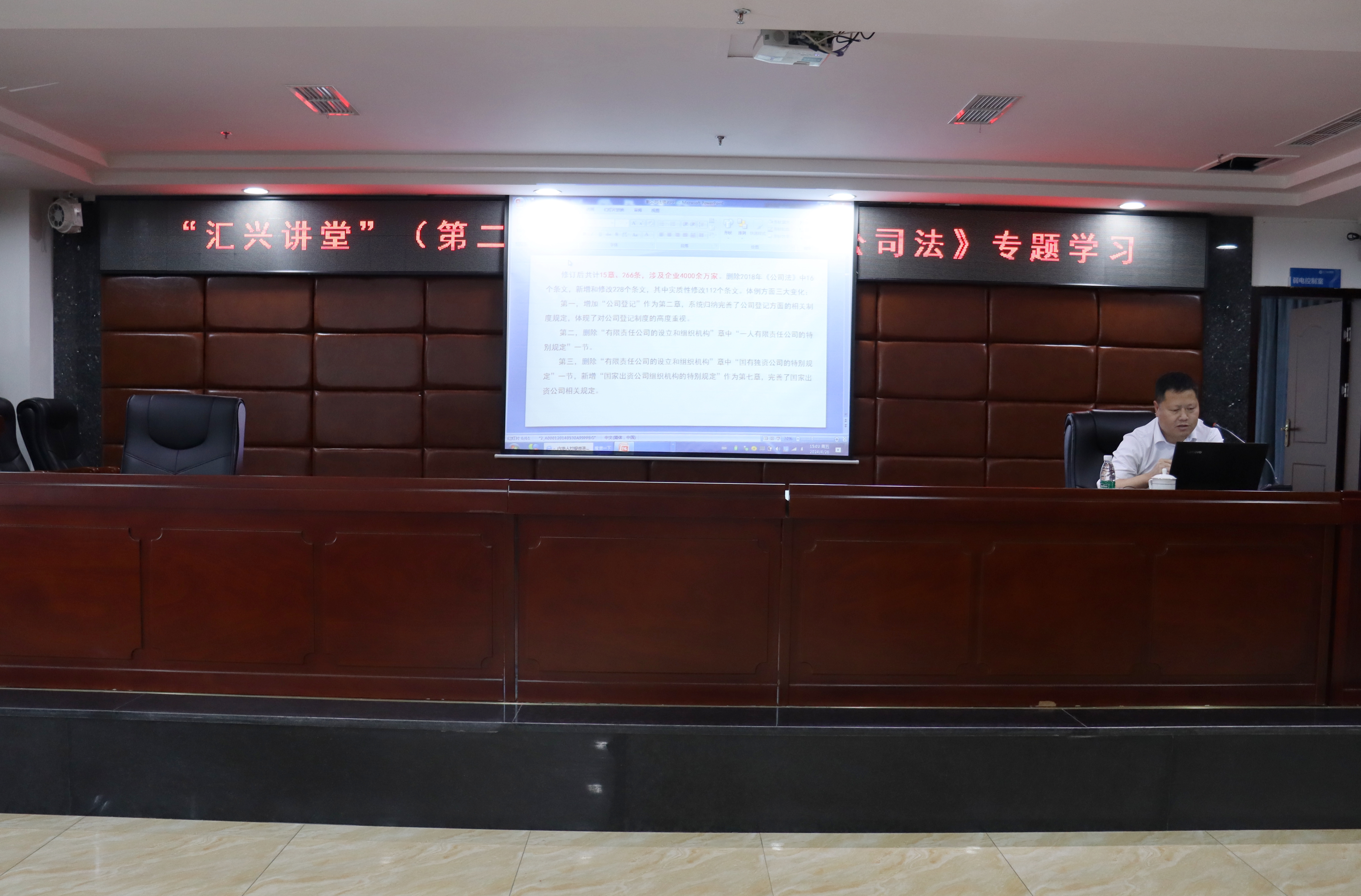 為深入推進(jìn)依法治企,4月26日,集團(tuán)公司在二樓會議室舉辦“匯興講堂”第二期培訓(xùn)班。此次培訓(xùn)以“新《公司法》專題培訓(xùn)”為主題,由集團(tuán)公司法務(wù)部、紀(jì)檢監(jiān)察審計部部長王華主講,總公司及各子公司70余人參加。