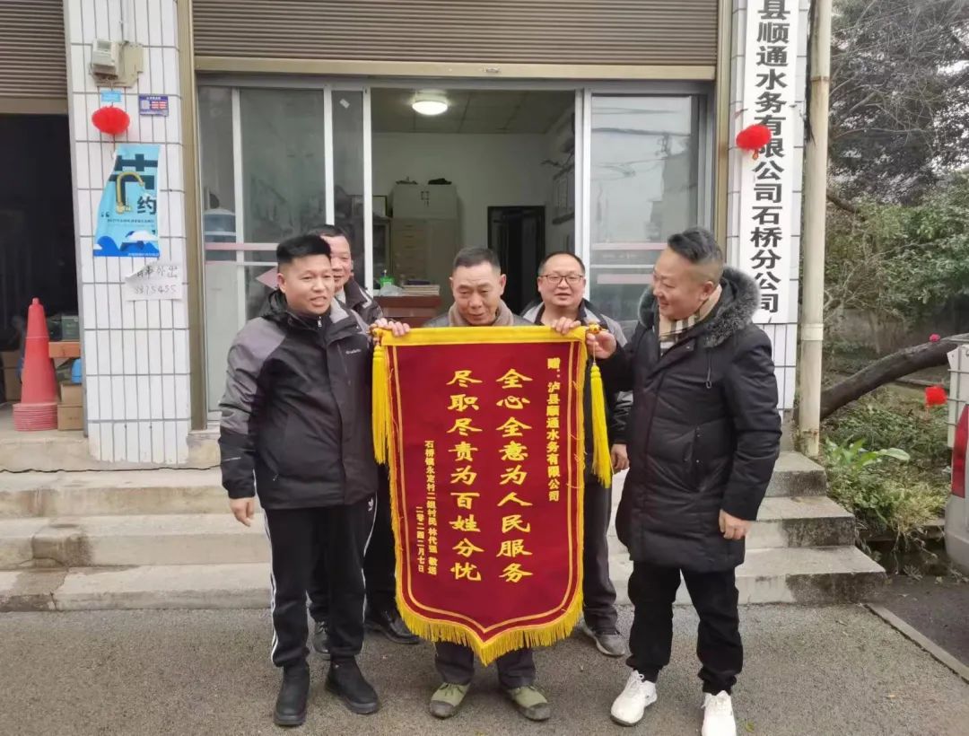2月7日,石橋鎮(zhèn)永定村送來錦旗,感謝順通水務(wù)公司解決用水問題,為民辦實事。