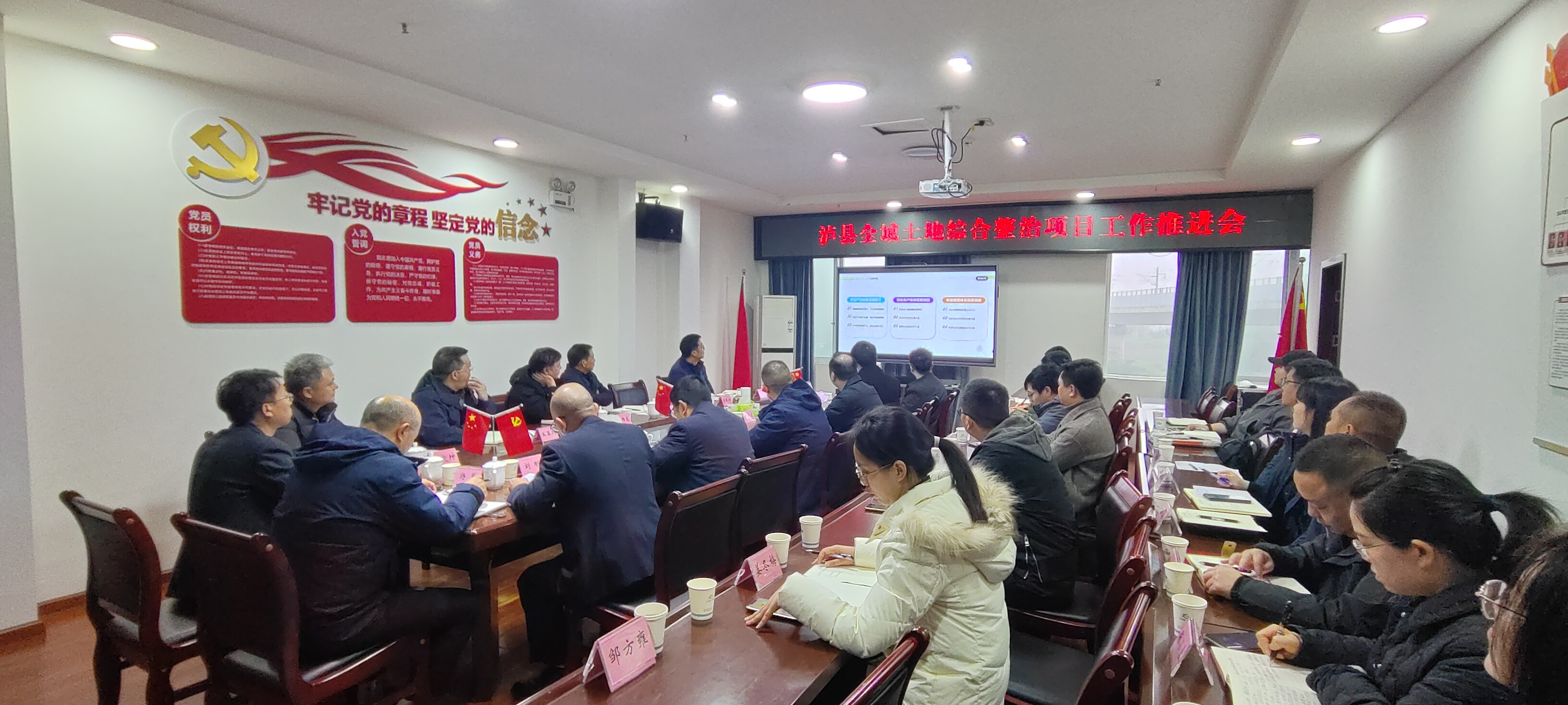 12月4日下午,瀘縣全域土地綜合整治項目工作推進會在匯興集團三樓會議室召開,會議聽取了鄉(xiāng)村振興產(chǎn)業(yè)重點項目戰(zhàn)略規(guī)劃相關(guān)情況的匯報,并現(xiàn)場討論了有關(guān)項目實施的可行性、存在問題及解決路徑??h政府二級調(diào)研員杜作文、集團公司董事長黃寧,縣自然資源和規(guī)劃局、三項試點改革推進辦、中咨公司、等相關(guān)單位人員參會。